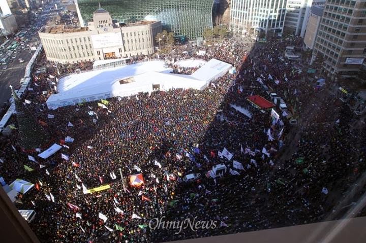 [Editor’s Note: The following photo news show how broad, determined and popular the ordinary peoples from all walks of life in South Korea are in their defiant struggle to topple the illegally-elected president who was brought to power through an unprecedented, unimaginable, and unheard of election fraud, the first-ever political crime in such a massive and deceptive scale in the South Korean presidential election history. It, too, may not be heard of from anywhere around the world in terms of the government-directly-involved massive scale election fraud. The first lady President Park is the DAUGHTER to the worst military dictator throughout the 1960s and 70s. As well-known, he was one of the worst pro-Japanese national traitors as a vicious Japanese military officer till the collapse of Japanese Empire in August 1945. The daughter dictator seems to have become an even more fascist, vicious and cruel dictator than his father. Of course, she is not much different from her father in their shameful pro-US flunkeyism.]